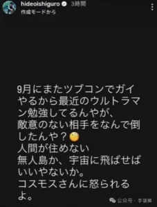 “因为9月份圆谷祭要演‘红凯’,所以在补新奥,不过为什么要打倒没有敌意的对手呢?找个没人的荒岛、或者干脆送它去宇宙不行吗?杀死它高斯会生气的啊。”